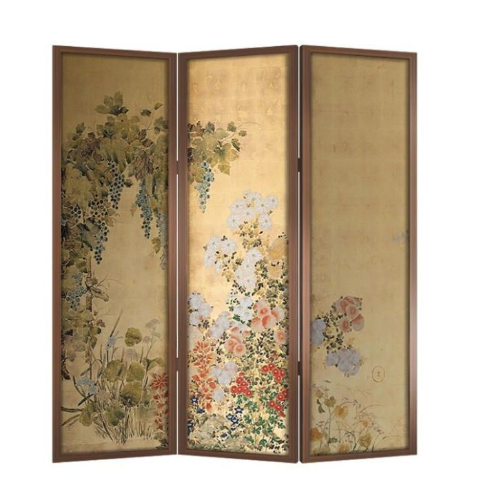 レトロ草花屏風仕切りリビング折りたたみ移動遮蔽オフィス書斎装飾実木折屏