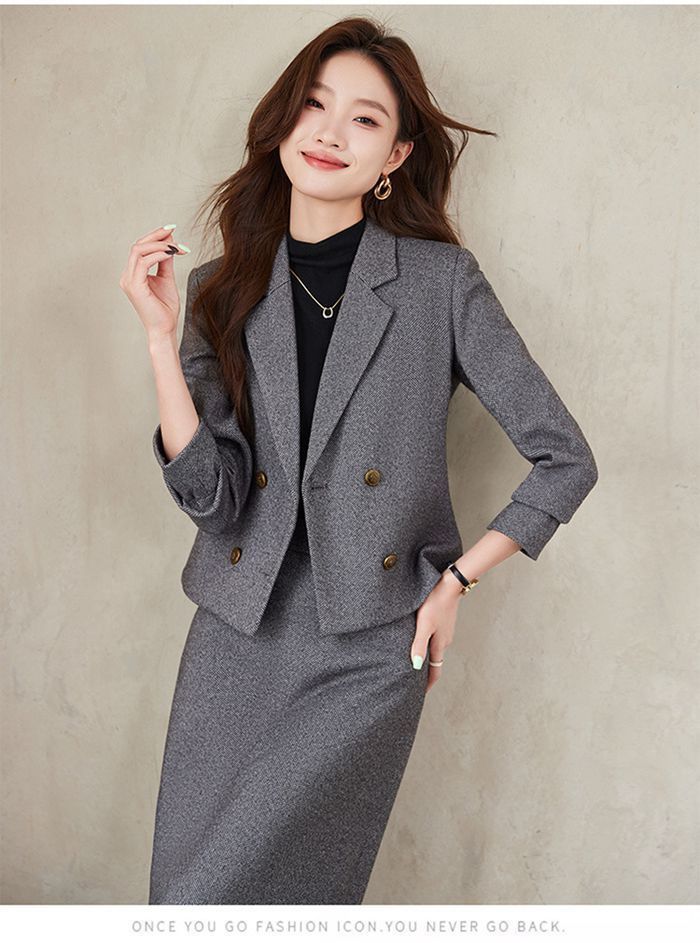 スカートスーツ レディース 無地 長袖 セットアップ コート ママスーツ 上下セット 2点セット スカート スーツ ロングスカート 体型カバー 着痩せ ゆったり ボタン カジュアル エレガント 通勤 OL オフィス 大人
