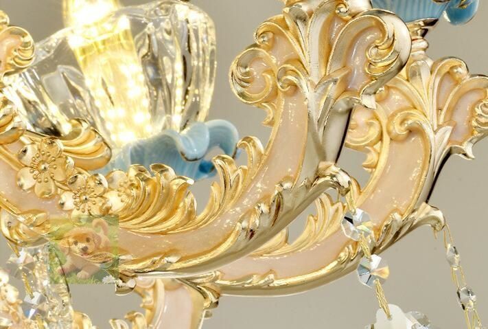 リビングシャンデリア欧風クリスタルシャンデリア贅沢大気青色レストラン寝室ライト贅沢家庭用豪華別荘照明器具6灯