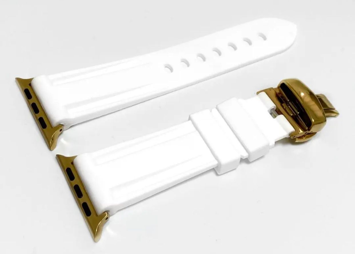 ゴールド×ホワイトAppleWatchキラキラカバーアップルウォッチラバーバンド