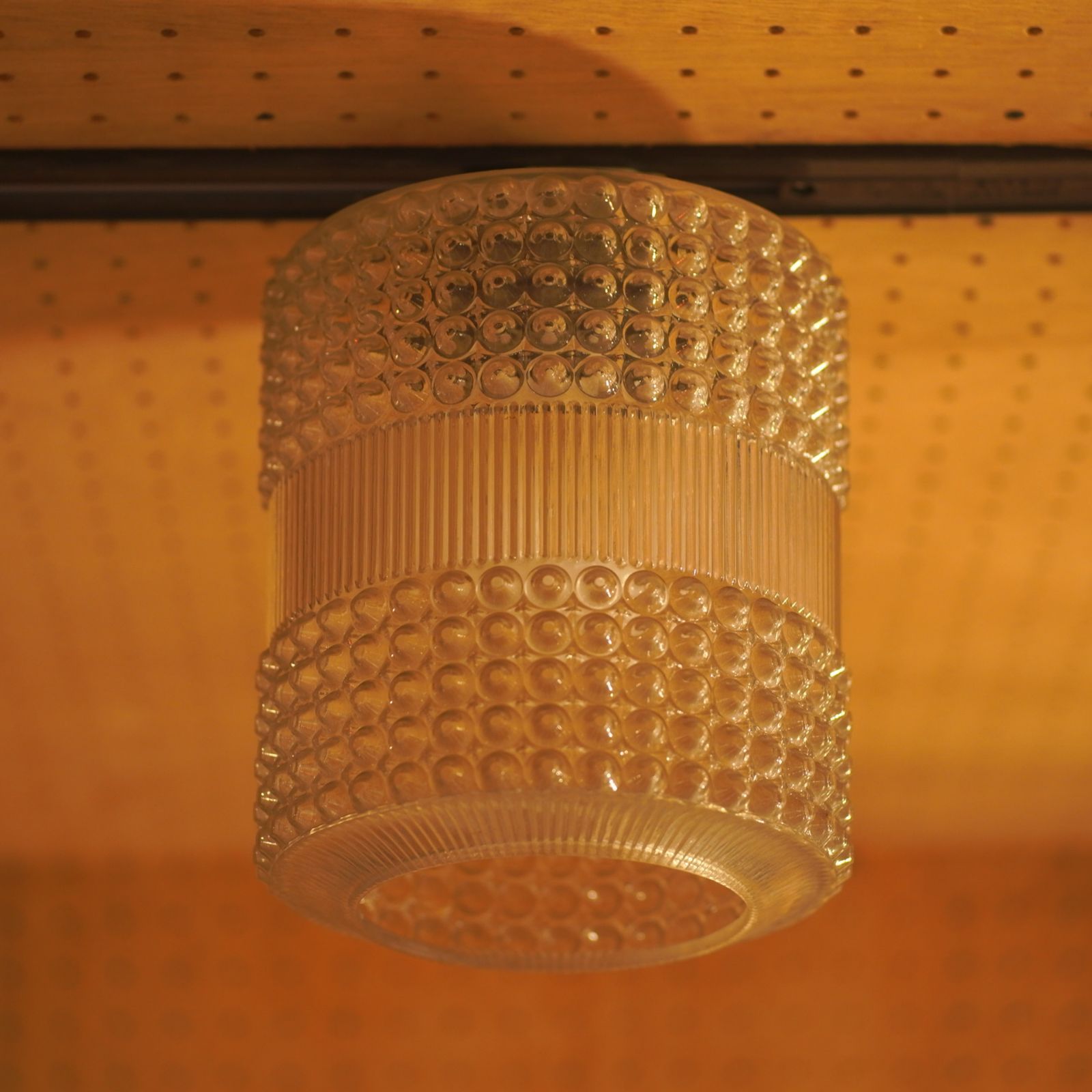 一見はガラスですが、樹脂製のシェードです。ガラスよりも凹凸がくっきりとしたデザインは、古き良き昭和時代を感じる灯りです。LED電球より白熱球が似合いそうな雰囲気。