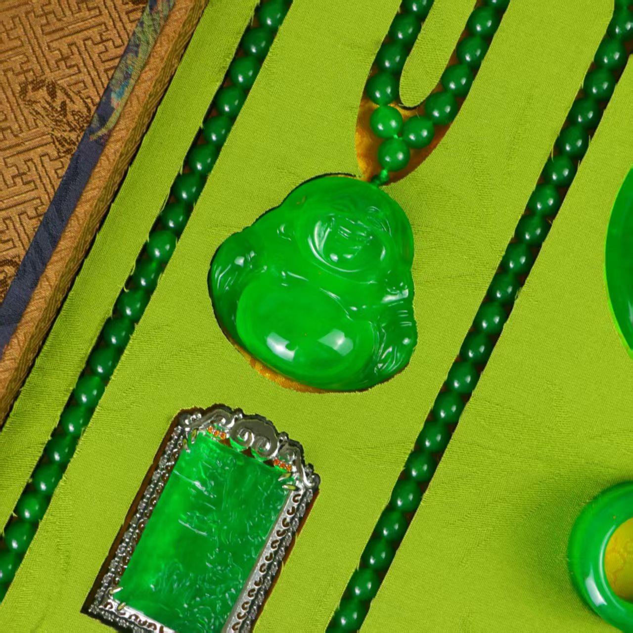清代 宮廷御蔵 髙氷翡翠彫 帝王緑 ネックレス 腕輪 アクセサリ指輪 置物 時代物 旧家蔵岀し 唐物 中国古 R 092617