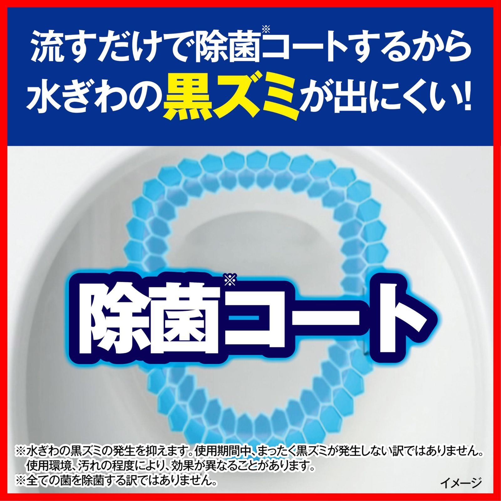 洗浄・防汚成分を配合、便器をコートし、汚れの付着を抑え、便器のきれいを保ちます。 環境・汚れの程度で、効果が異なることがある。水の流れない部分の汚れは防げない。