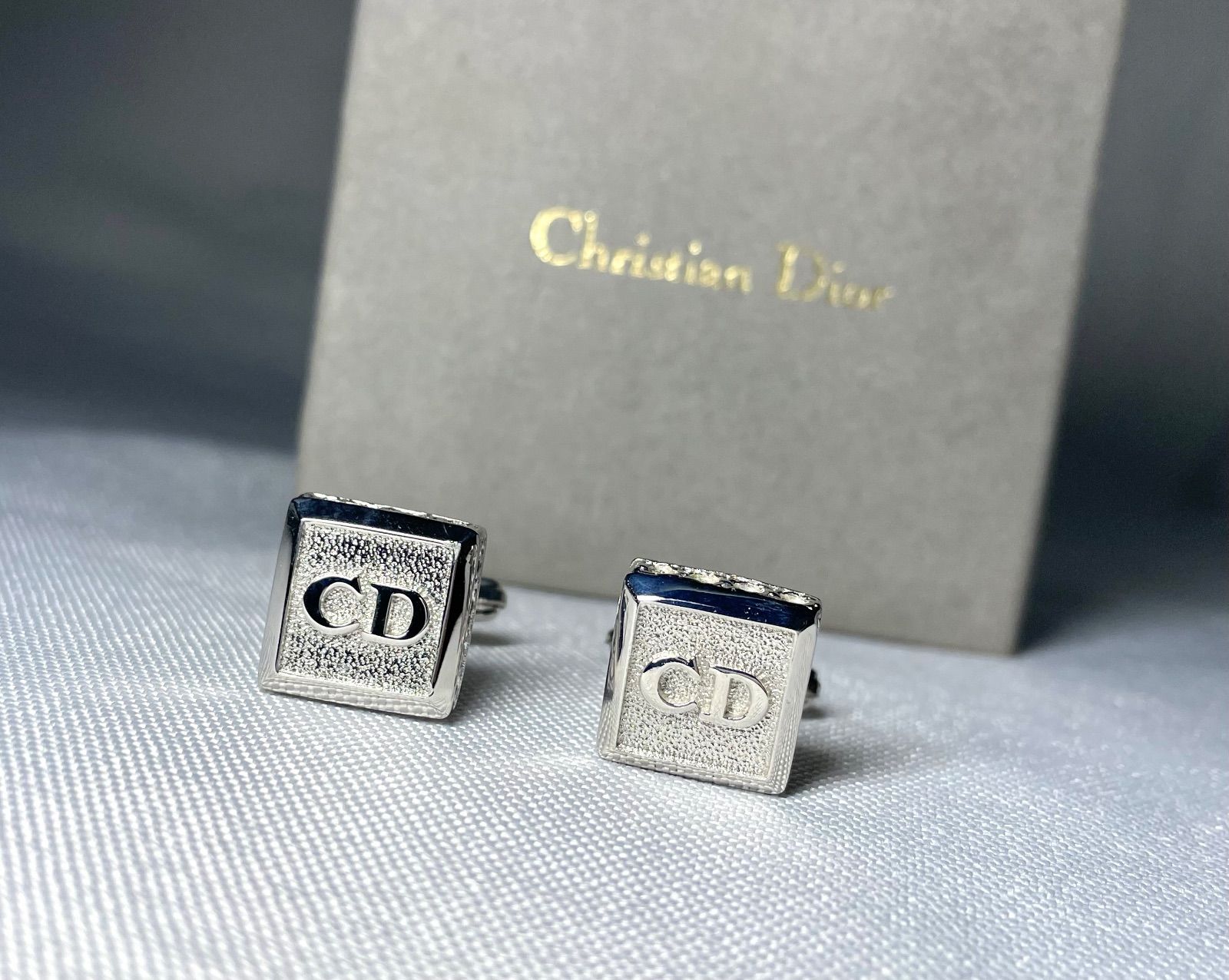 Dior Homme ディオールオム 立体CDロゴ シルバー スクエアカフス カフリンクス ボタン メンズ ケースあり
