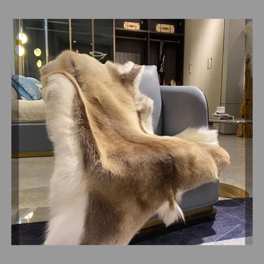 トナカイの毛皮のカーペット全体本革の柔らかいリビング風窓付きソファクッション毛皮のカーペットは快適