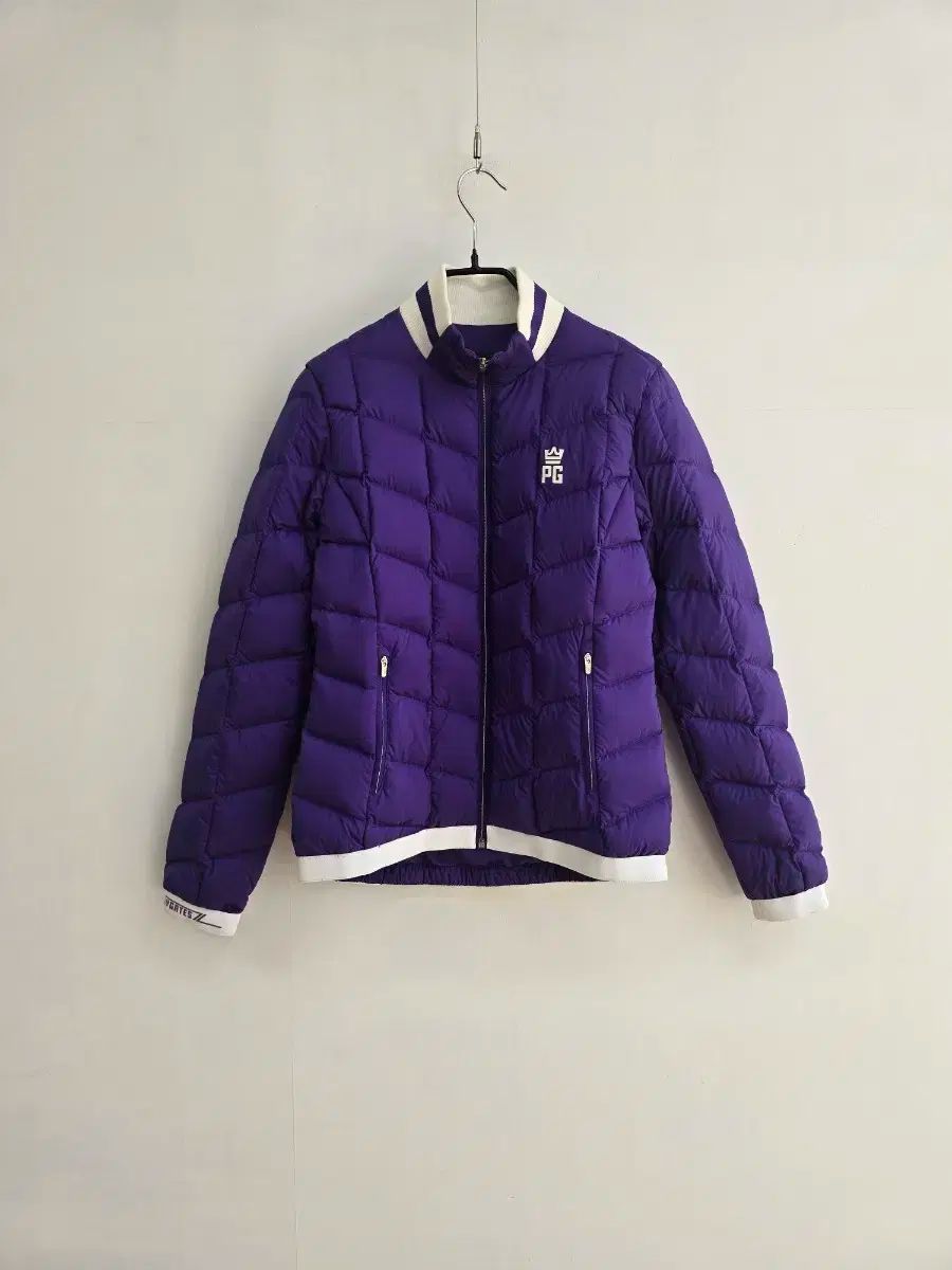 Paris Gatesの女性用グースダウンパッド入りジャンパー。明るいパープルカラーがフィールドで目立ちます。軽量のパッドは快適で動き回っても暖かいです。